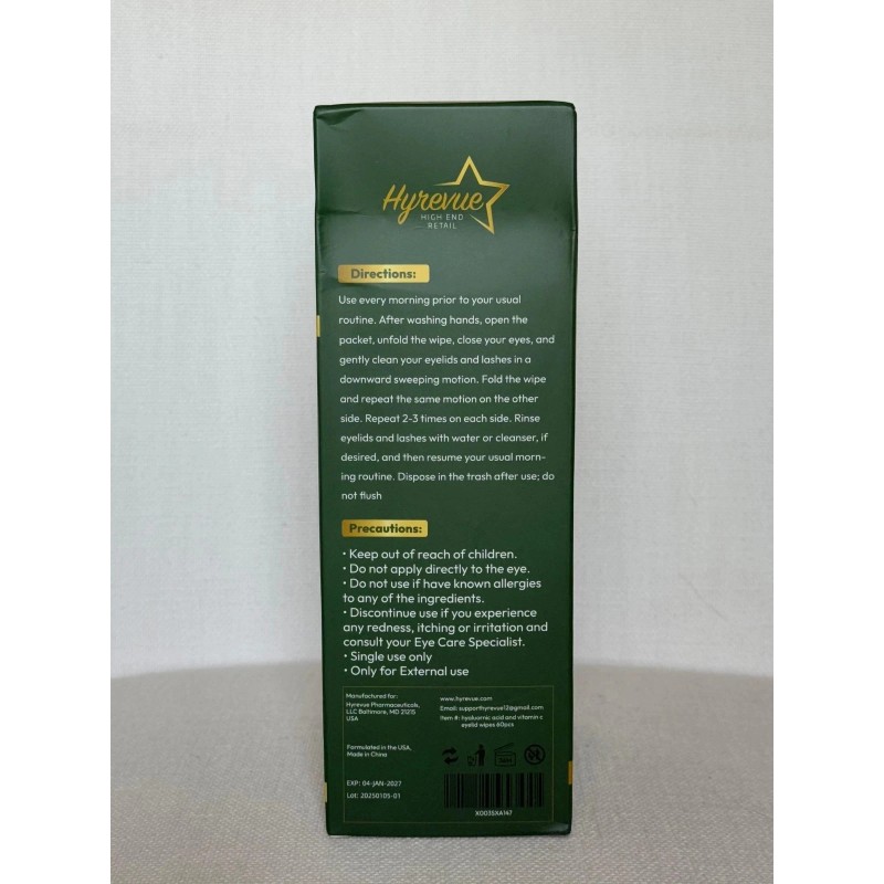 Branded Eyelid Cleansing Wipes With Hyaluronic & vitamin c 60ct