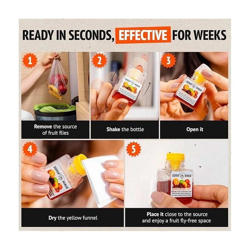 - Extended Protection - Up to 3 weeks: Enjoy long-lasting protection with our fruit fly trap. Each bottle offers up to 3 weeks of continuous coverage—just place it in high-traffic areas and let this powerful trap do the work.