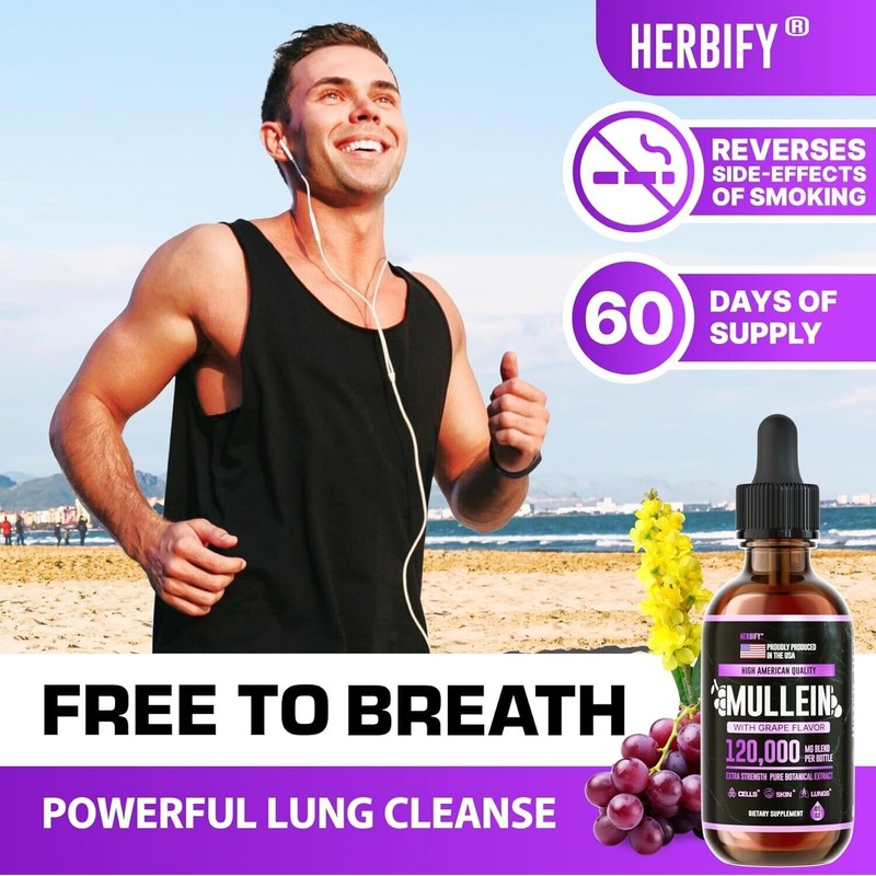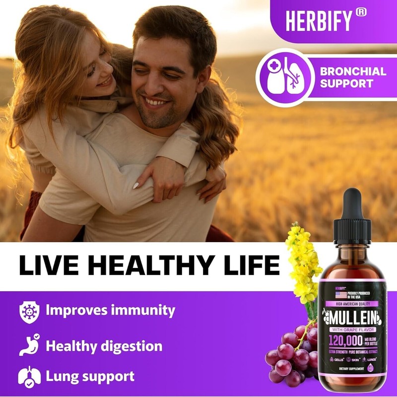 - Powerful lung complex blend provides significant improvement for your respiratory system. We use the finest leaves and flowers of Mullein herb. Enjoy the liquid supplement with the highest concentration of Mullein.