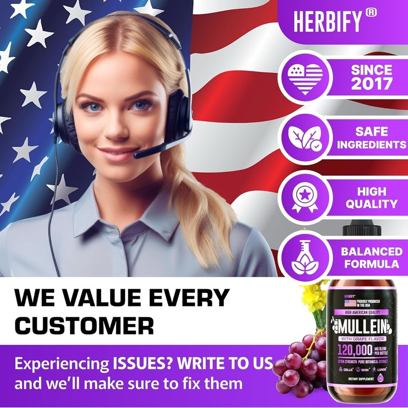Mullein Drops - Lung Cleanse - Leaf Extract - Powerful Mullein for Immune Support,Detox & Respiratory Support - Made in USA - Herbal Supplements - 4 Oz Grape Flavor