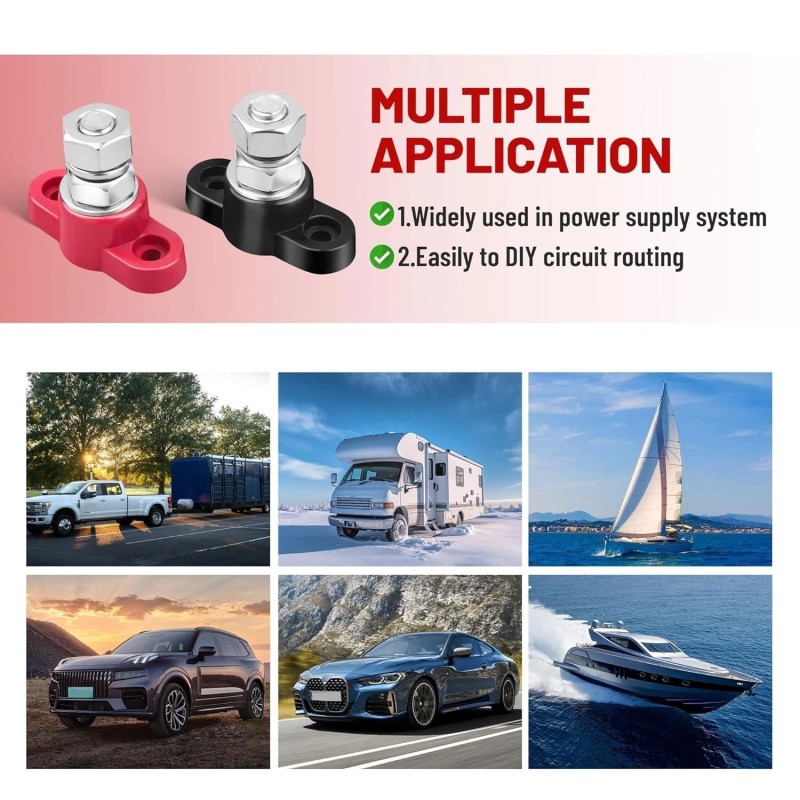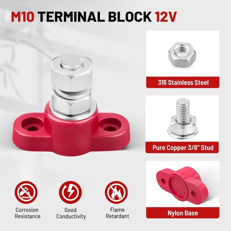 Wide Application: M10 single terminal block is designed to hold terminals securely in place; Ideal for various vehicles and vessels, including cars, RVs, yachts, caravans, ATVs, and ship power systems