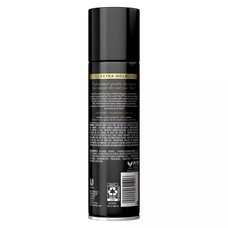 - Tresemme Extra Hold Hairspray for 24-Hour Frizz Control, with Pro Lock Tech, 4.2 oz.