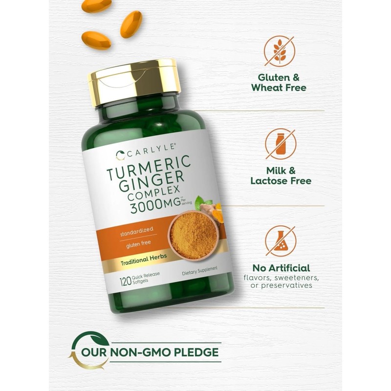 Branded Tumeric Curcumin Max Potency and Ginger Complex 3000 Mg, 120 Softgels by Carlyle