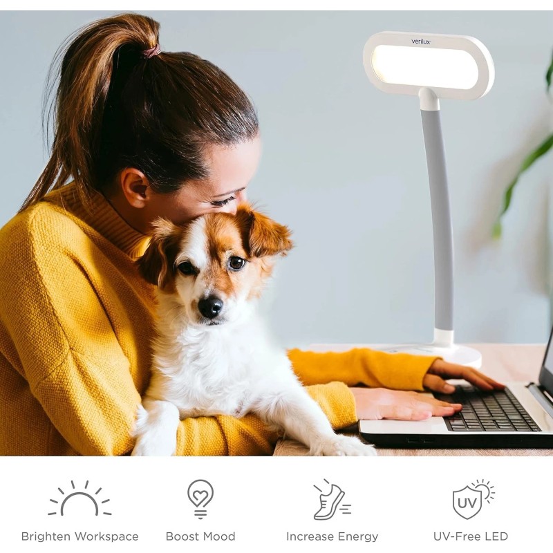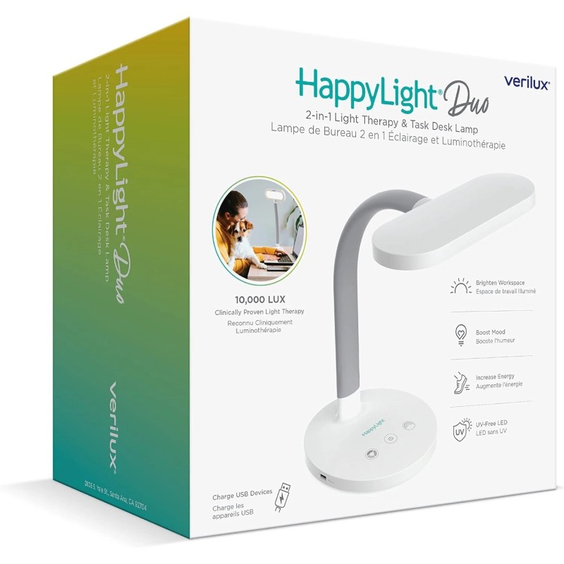 BRANDED Verilux HappyLight Duo - 2-in-1 Light Therapy & Task Desk Lamp - UV-Free Full Sp