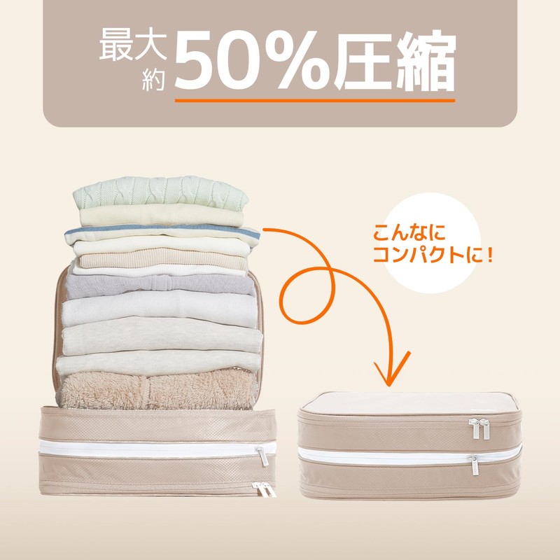 - ORGANIZED & EFFICIENT - Branden compression packing cubes feature a double-zipper system that neatly organizes and compresses your belongings for hassle-free travel. With a zipper design conserving up to 50% of storage space, these cubes keep items tidy, maximizing packing efficiency.
