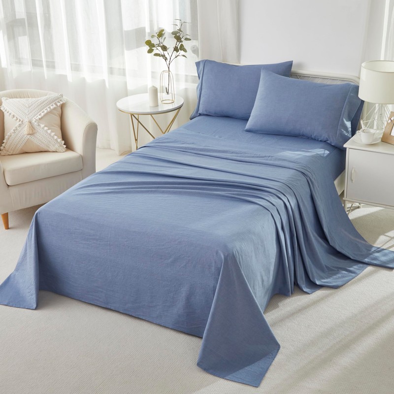 - PREMIUM COTTON BENEFITS: 100% Washed Cotton Sheet Set choose 100% cotton fiber as a natural material to make bedding more breathable - Ensure you feel warm in chill weather and cool in warm weather by absorbing moisture to adjust your climate of comfort all season during your sleep unlike regular polyester covers make you and your family feel sweaty