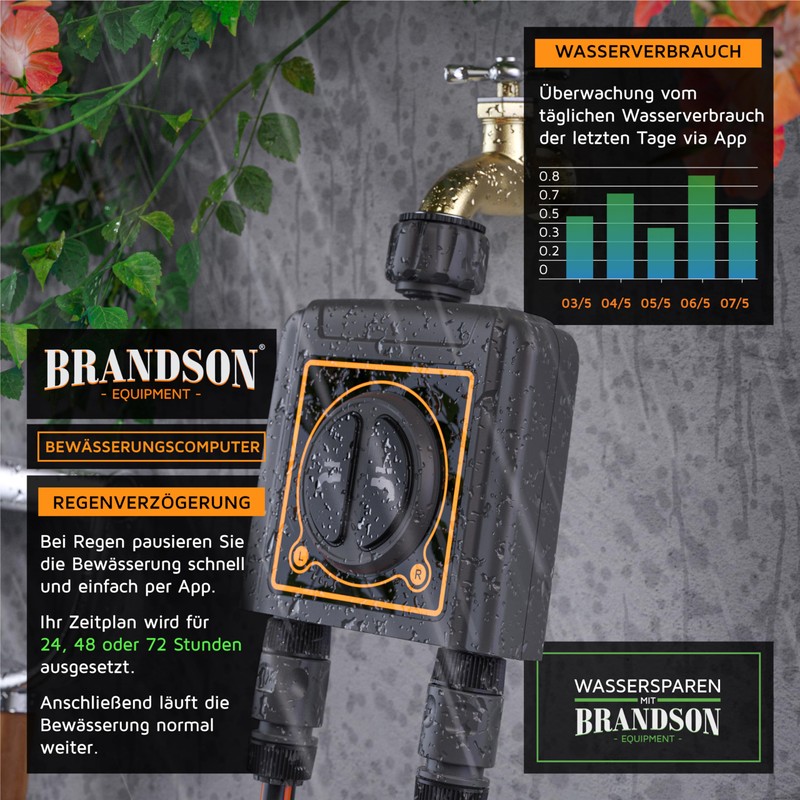 Brandson - 2 Zone Irrigation Computer with WLAN - WiFi Watering System Garden 2 Outputs - App Smart Life - Watering Timer - Automatic Watering - Rain Delay - Alexa