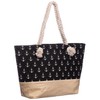 Brandsseller Beach bag, swimming bag, maritime with zip, canvas, approx. 50 x 36 x 15 cm, shoulder bag, shopping bag, bath bag, Anchor/Black