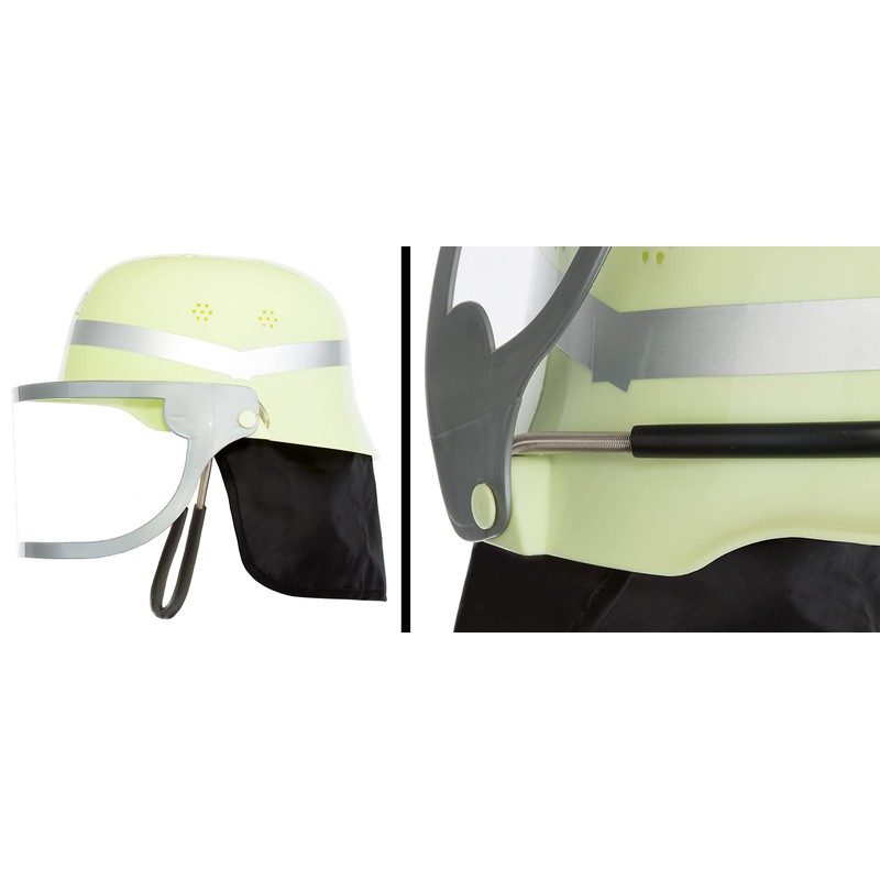 - The adjustable visor as well as the black neck cloth complete the fire brigade helmet.