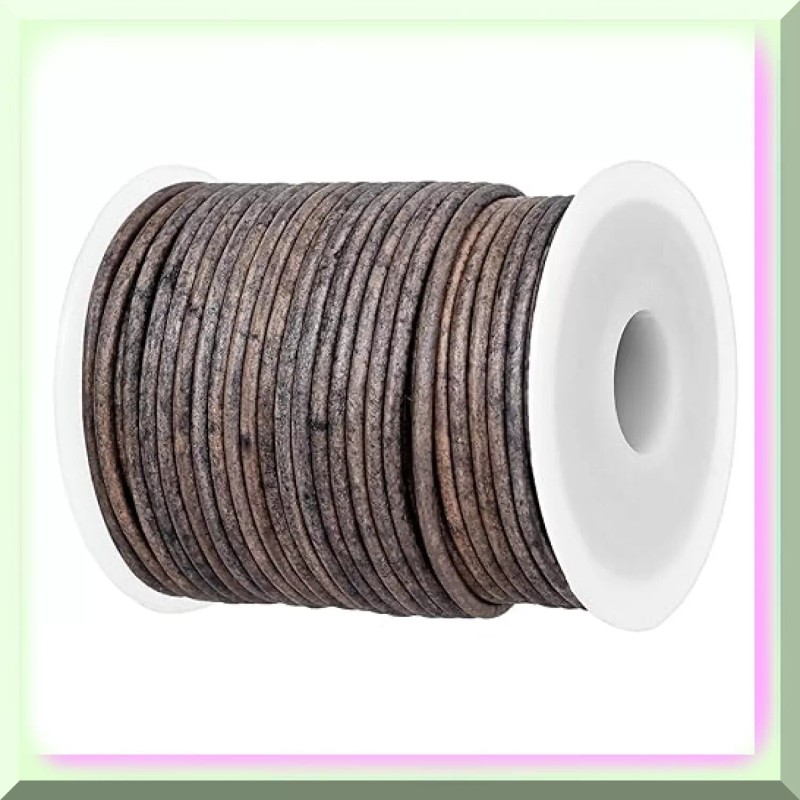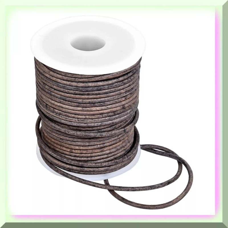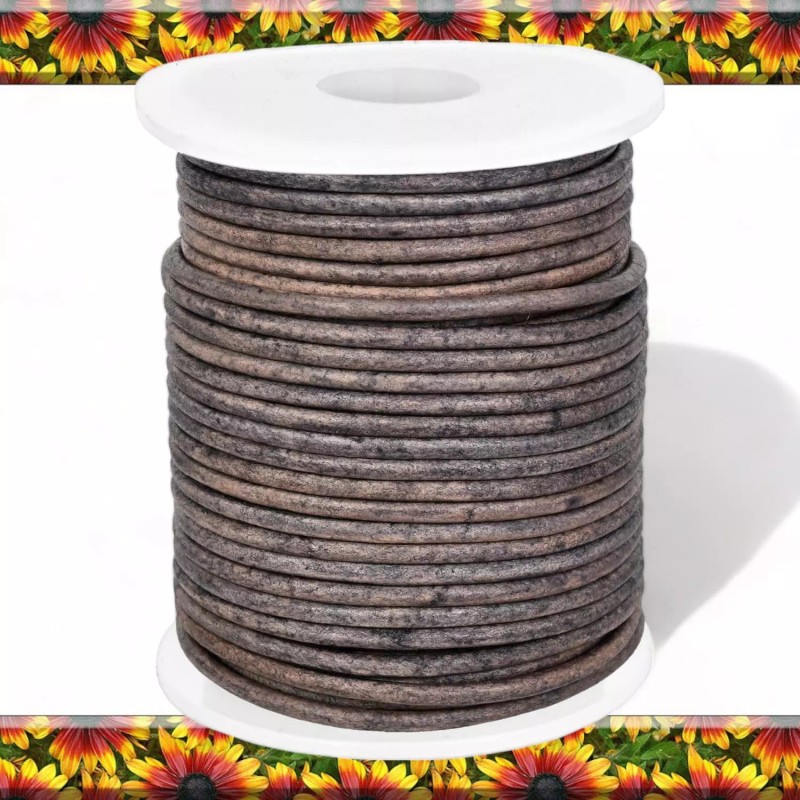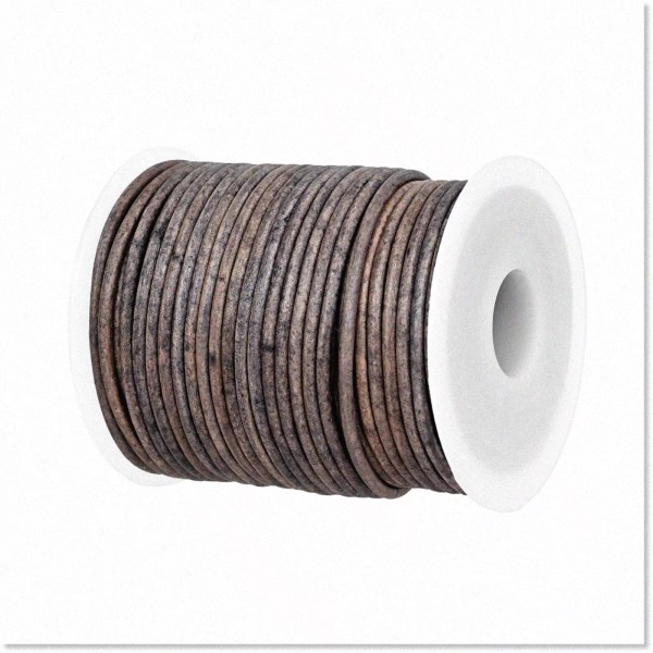BRANDX Premium Quality 2mm Genuine Round Leather String Cord - Stylish Grey Distressed