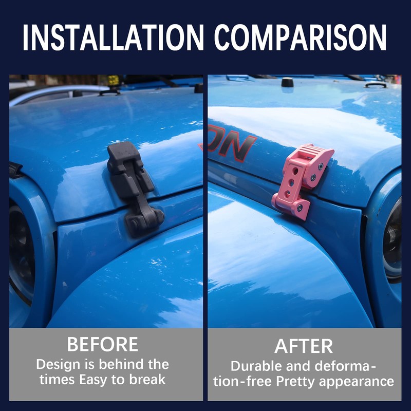 - High Quality: The hood latch is made of die-cast electroplated stainless steel and high-strength aluminum alloy. Excellent heat and scratch resistance. Keeps the hood in place even on rough terrain and reduces hood chatter.