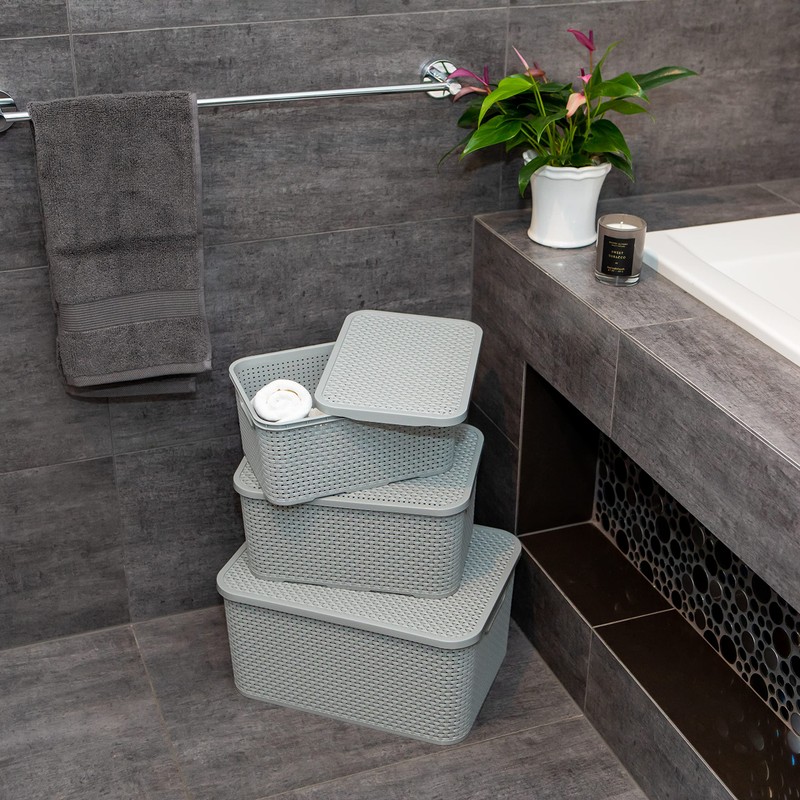 - Rattan design with small ventilation holes. Ideal for the bathroom, kitchen, workshop or office. Easy to clean.