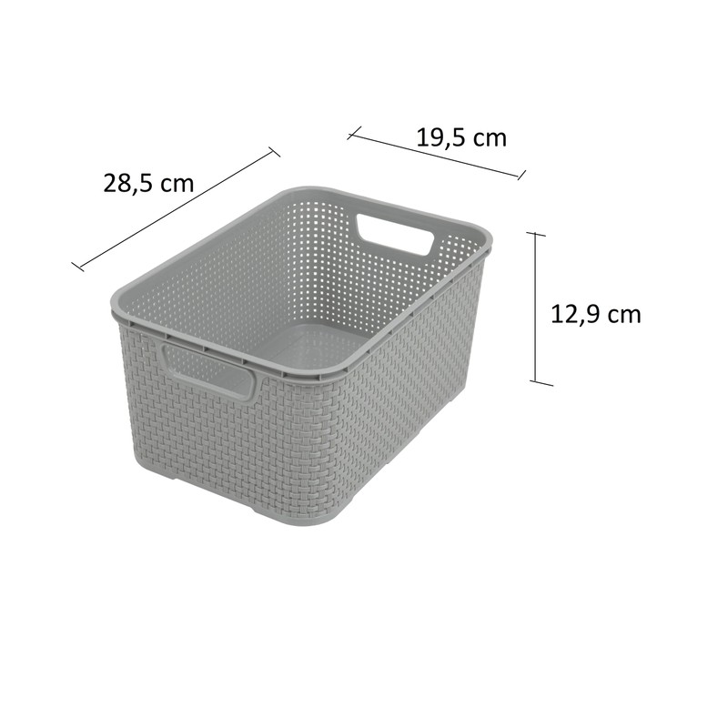 BranQ Home Essential Universal Multifunctional Basket in Rattan Design, Size S 7L, BPA-Free Plastic PP, Light Grey, 28.5 x 19.5 x 12.9 cm