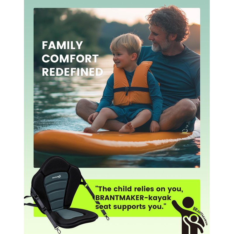 BRANTMAKER Kayak Seats with Back Support, Paddle Board Seat, Universal Thicken Cushion for Inflatable Paddleboard, Sup, Canoe, Ocean Kayak