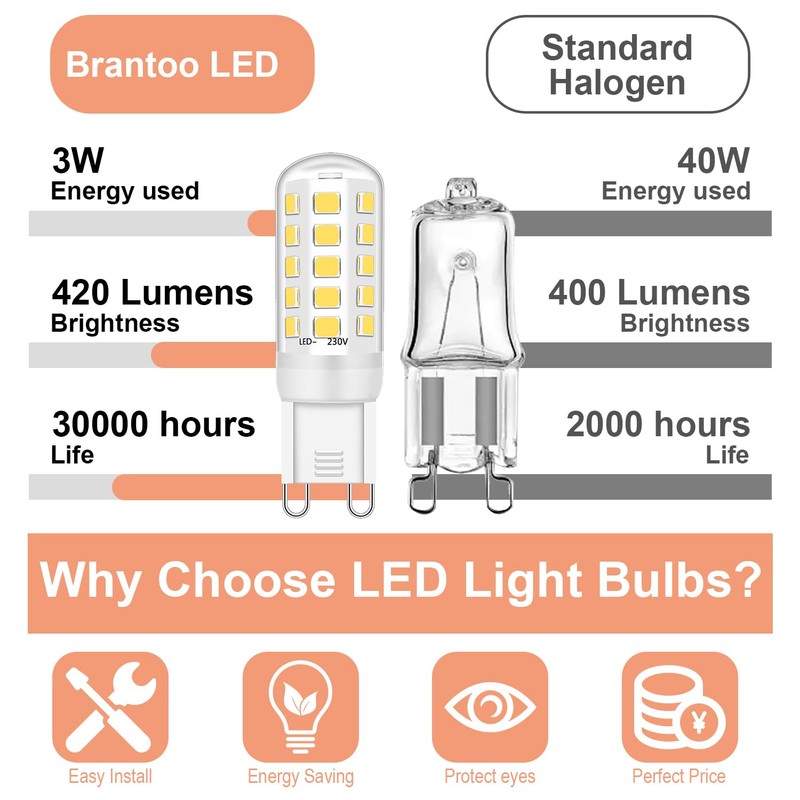 - 🔥【PERFECT REPLACEMENT for HALOGEN BULBS 】- Our g9 led light bulbs provide you perfect replacement for 25W, 28W, 33W, 40Watt halogen bulbs and the consumes only 10% energy. Not dimmable.
