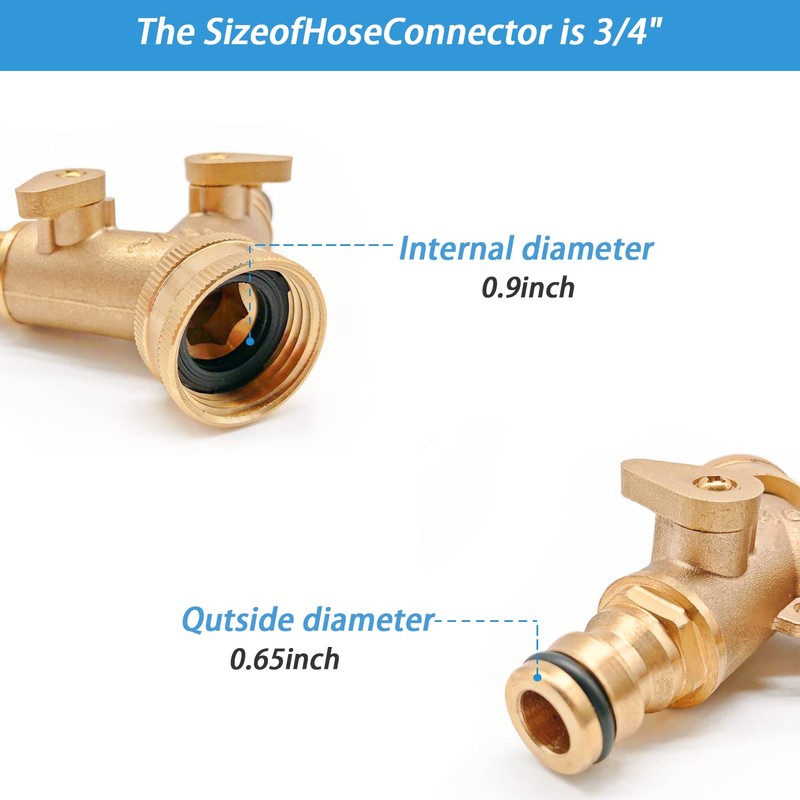 • 【Easy to Install and Use】Our brass hose diverter fits all standard 3/4 inch diameter connections, the 2-way garden hose diverter allows two hose connectors to connect to one faucet,