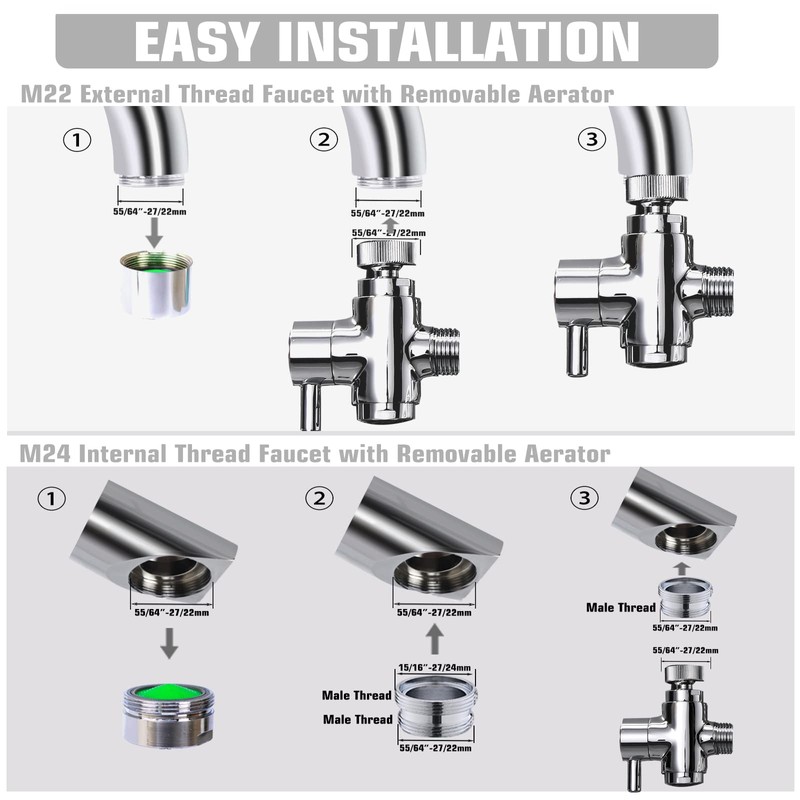 Brass Faucet Diverter Valve with Aerator, 3 Way Faucet Splitter with Male Thr...