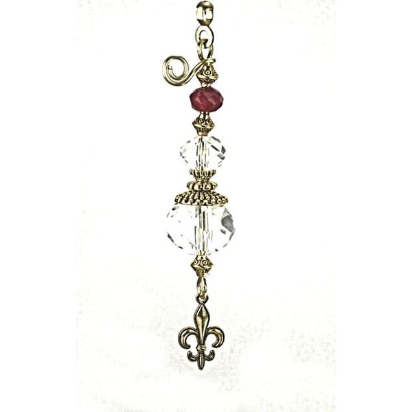 Trace Ellements Brass Fleur de Lis and Burgundy Faceted Glass Fan Pull/Light Pull