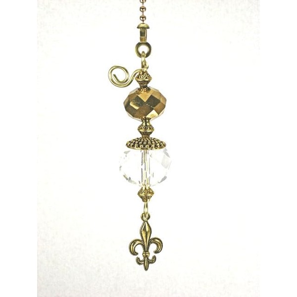 Trace Ellements Brass Fleur de Lis and Crystal Clear Faceted Glass Ceiling Fan Pull Chain