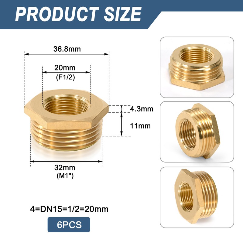 | Size: | 1" AG x 1/2" IG 6pcs |