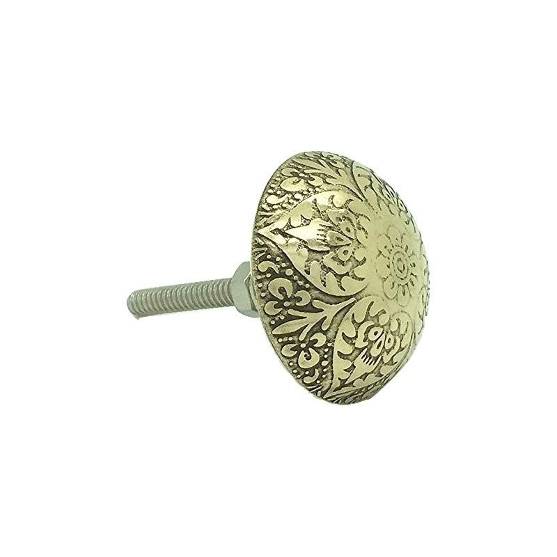 These beautiful brass door knobs will brighten up any piece of furniture. Perfect for any recycling or up-cycling project! The main knob has a 3.75 cm diameter. Made in India.