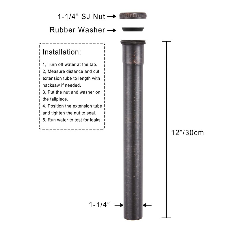- 【OIL RUBBED BRONZE】This drain extension tube is a solid pipe with nice finish which is rust-resistant and corrosion-resistant. Its awesome bronze look matches your bronze P trap, sink drain and other dark color bathroom fixtures.