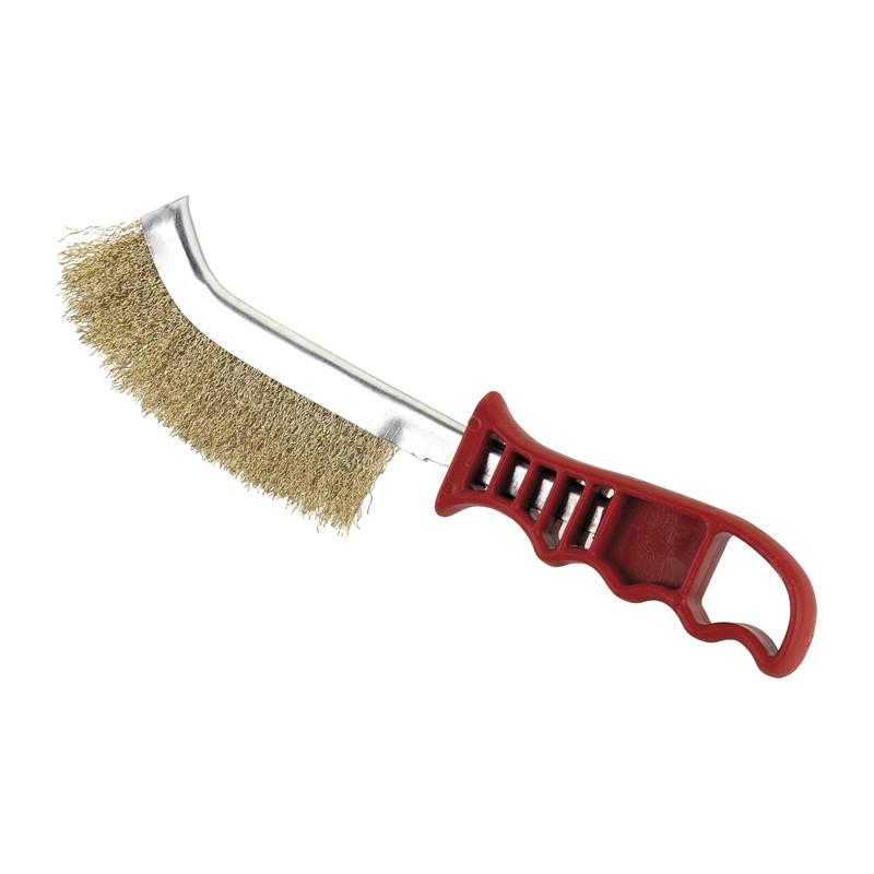 - [BRASS STEEL BRUSH] with [plastic handle] (20cm) ideal for [cleaning] and [deburring] metal surfaces, [removes rust].