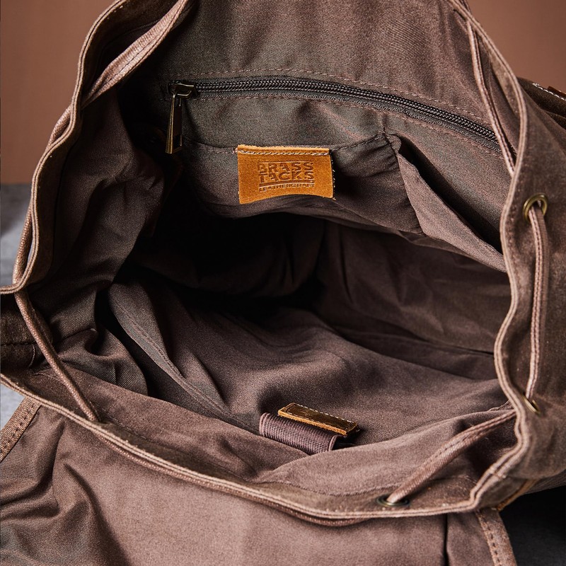 BRASS TACKS Leathercraft Backpack for Men Heavy Duty Waxed Canvas Vintage Women Trim Casual 15.6" laptop Travel Backpack-Coffee