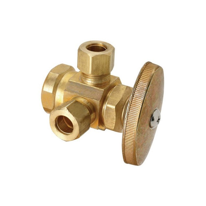 BRASSCRAFT R1701LRX RD 1/2" Female Iron Pipe x 3/8" OD Compression x 3/8" OD Compression Rough Brass Dual Outlet Valve