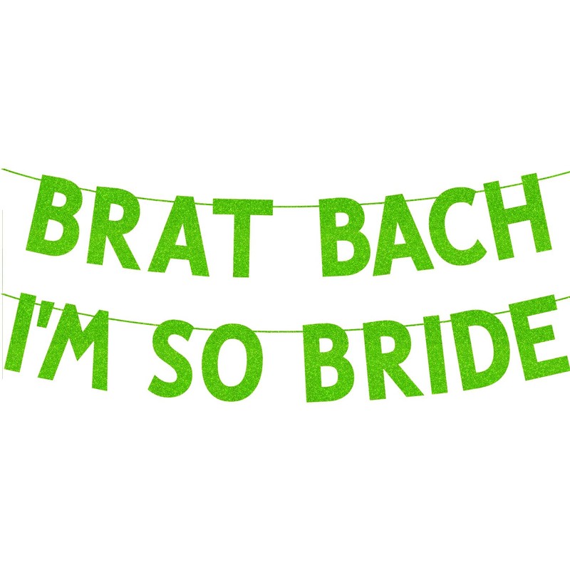 Brat Themed Party Decor, Lime Green Glitter BRAT BACH I AM SO BRIDE Party Banner Decorations, Brat Bachelorette, Brat Party Supplies, Brat Summer, Birthday Brat Party Signs