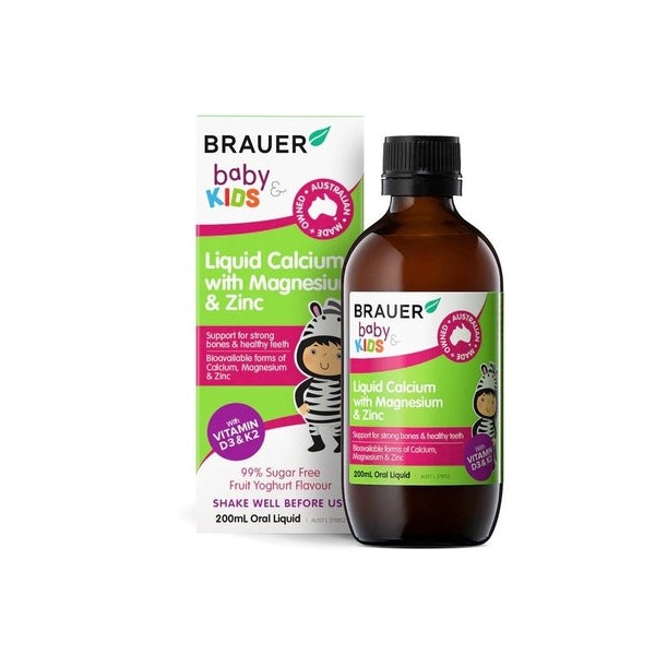 Made with bioavailable forms of calcium, magnesium & zinc, for kids 12 months + Brauer Baby & kids liquid helps support the development of strong bones and teeth.