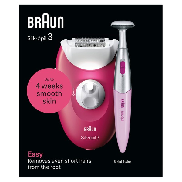 Braun 3-202 Silk-épil 3 Epilator Include Bikini Trimmer, Raspberry