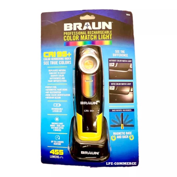 BRAUN BRAND NEW 455 LUMEN PROFESSIONAL LED COLOR MATCH INSPECTION LIGHT RECHARGEABLE