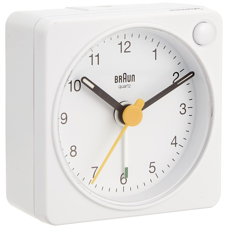 BRAUN/Brown Table Clock, Alarm Clock with Light, BC02XW Classic Analog Alarm Clock, Genuine Imported Product, White Table Clock, white, Minimalist
