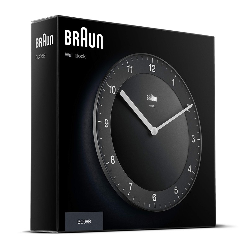Braun Classic Analogue Wall Clock with Quiet Quartz Movement, Easy to Read, 20cm Diameter in Black, Model BC06B, One Size