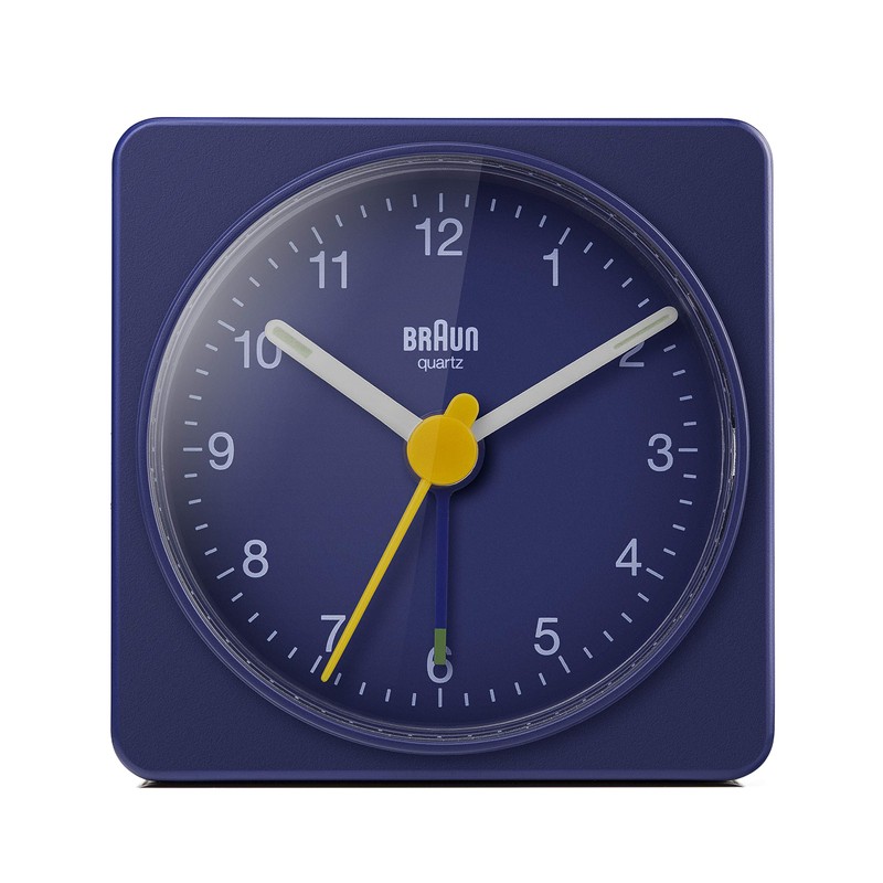 Braun Classic Travel Analogue Clock, Compact, Quiet Quartz Movement, Crescendo Beep Alarm in Blue, Model BC02BL, One Size
