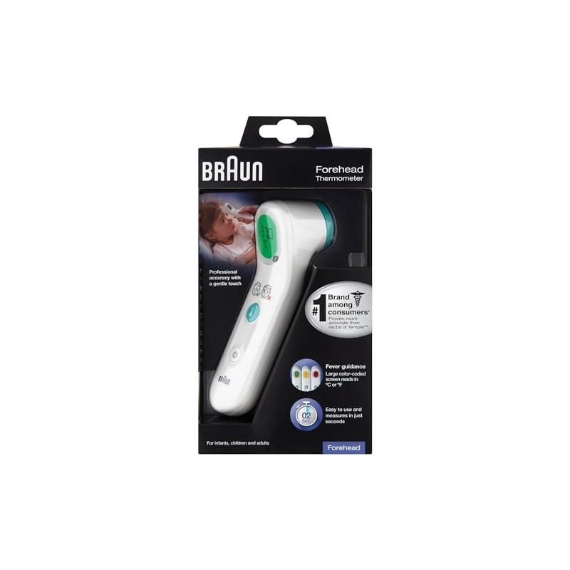 - How it works - The Braun Forehead thermometer measures the infrared energy radiating from the skin on the centre of the forehead, and converts this measurement into an oral equivalent reading.
