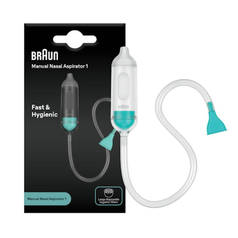 The Braun Manual Nasal Aspirator 1 is a device that is used to suction mucus from a
