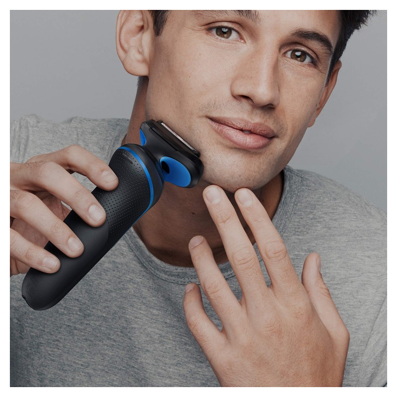 - Electric shaver with 3 Flexible Blades that adapts to facial contours for a close shave made easy