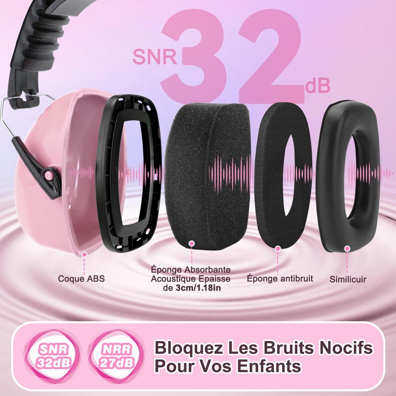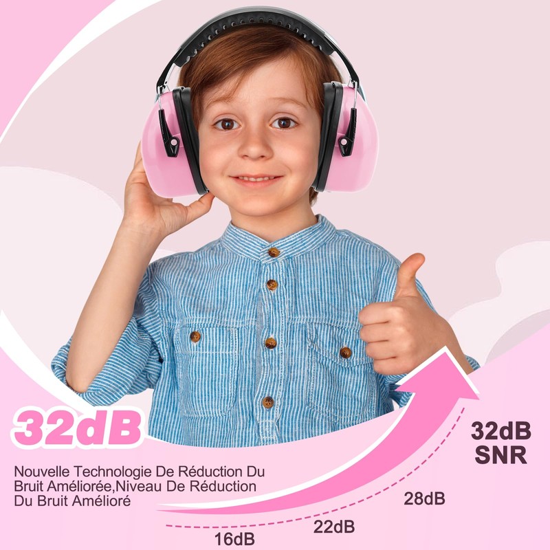 - 【NEW NOISE CANCELLING HEADPHONES FOR KIDS 1 PACK】: The ear muffs for kids with noise cancelling up to 32dB has been fully tested and certified, ANSI S3.19 (American National Standards Institute) and CE EN 352.1 test certification (European standard), with accurate information (SNR 32dB/NRR 27dB), noise reduction and protects hearing of 3.