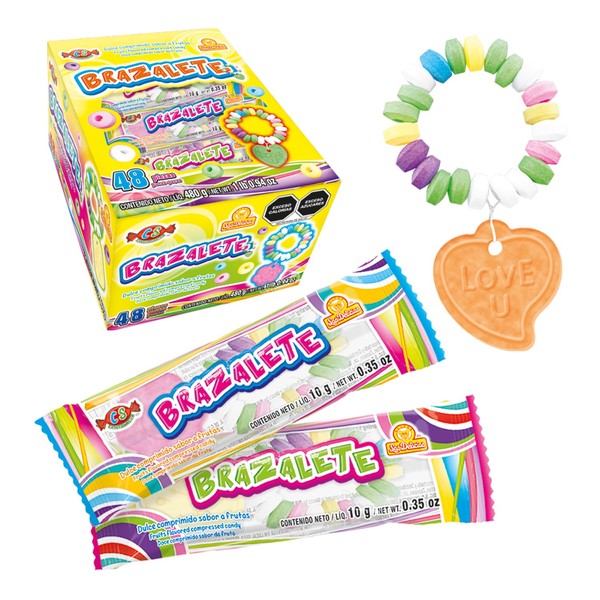Brazalete 48 piezas, Dulce Comprimido Sabor Frutales en forma de pulseras, Las Delicias.