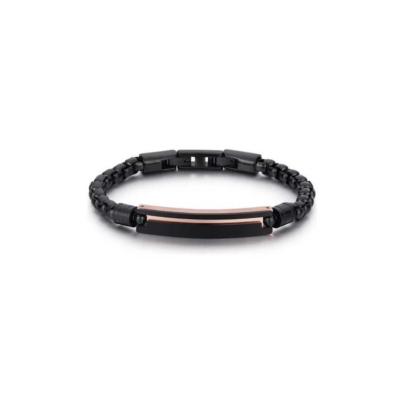 Brazalete Negro De Acero Inoxidable Con Barra Bicolor