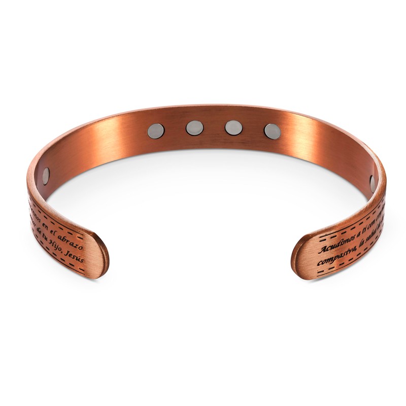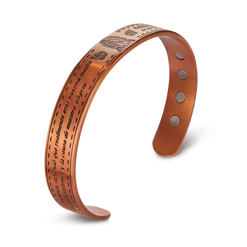Brazaletes cobre virgen de guadalupe exclusivo, Diseñada con 12 magnetos con beneficios curativos del cobre.