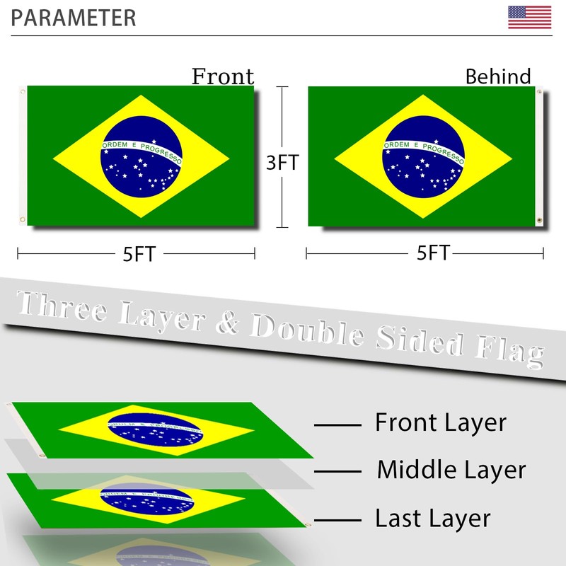 - [Durable & Strongest ]➡ METDIRU Brazil flag is double sided with three layer,durable and high strength wear resistance,can display the pattern correctly from any side