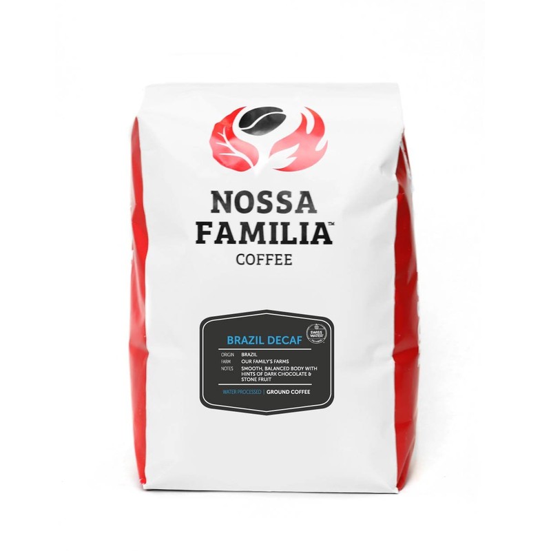Nossa Familia Brazil Organic-Decaf-Coffee - Medium Dark Roast Coffee - Fair Trade Ground Coffee Bean - Smooth Balanced and Low Bitterness - Sourced from Small Peruvian Farms - Brazilian Decaf 2lb