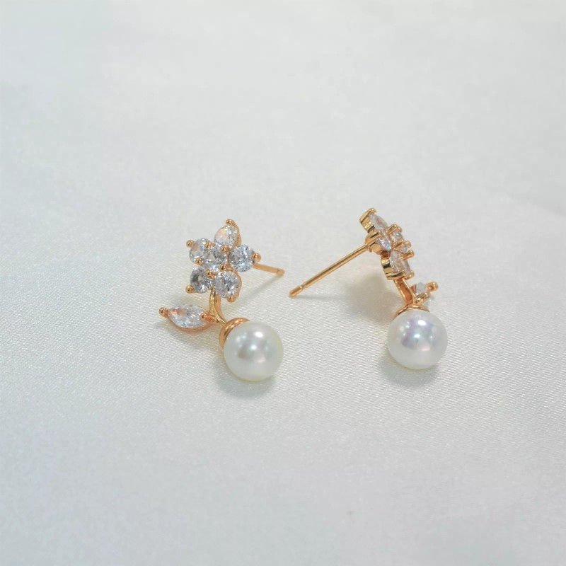 BrazilAJ CZ Flower Pearl Drop Earring Gold Plated Studs Wedding Earrings Statement Studs