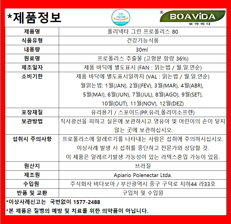 Brazilian Polynecta Green Propolis 80 Extract, 30ml 4 Units