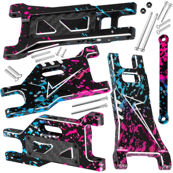 • 【6061 anodized aluminum】: Alloy Anodized Suspension A-Arms of 6061 anodized aluminum, precision CNC machined, lightweight and durable, increase crash resistance and long-lasting durability.