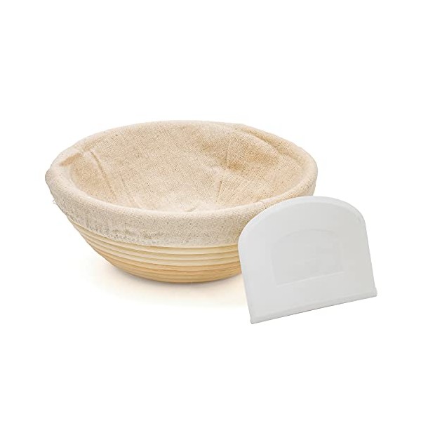 - IDEAL GIFT – This round proofing basket with included scraper makes an amazing present for any amateur baker or those inspired to start baking at home! Can be used with or without the fabric liner to produce two different styles of bread. When used with the liner a soft, smooth crust is produced for a picture-perfect loaf. When used without the liner, the rounds of the basket will make a spiral pattern in the dough that will give the crust a beautiful rustic look along with a harder crust.