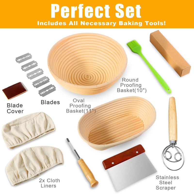 - Perfect Gift and After-Sale Guaranteed, Our banneton bread proofing baskets set can be as a good gift for seasoned baker or just starting. We have our own factory and responsible for our product, please feel free to contact us. Your satisfaction always are our first consideration.